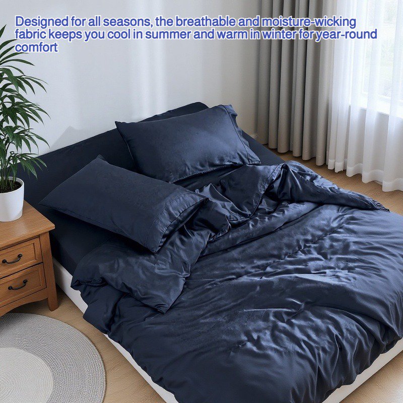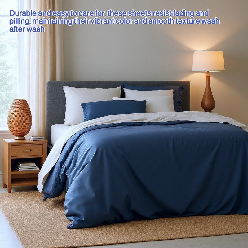 ● Made from sustainable, eco-friendly materials, this bed sheet set ensures a soft and comfortable sleep while reducing your environmental footprint. ● Designed for all seasons, the breathable and moisture-wicking fabric keeps you cool in summer and warm in winter for year-round comfort. ● Durable and easy to care for, these sheets resist fading and pilling, maintaining their vibrant color and smooth texture wash after wash. ● Hypoallergenic and gentle on sensitive skin, our sheets offer a healthy sleep environment for the whole family. ● Elegant and modern design complements any bedroom décor, making it a perfect upgrade for your home or a thoughtful gift.