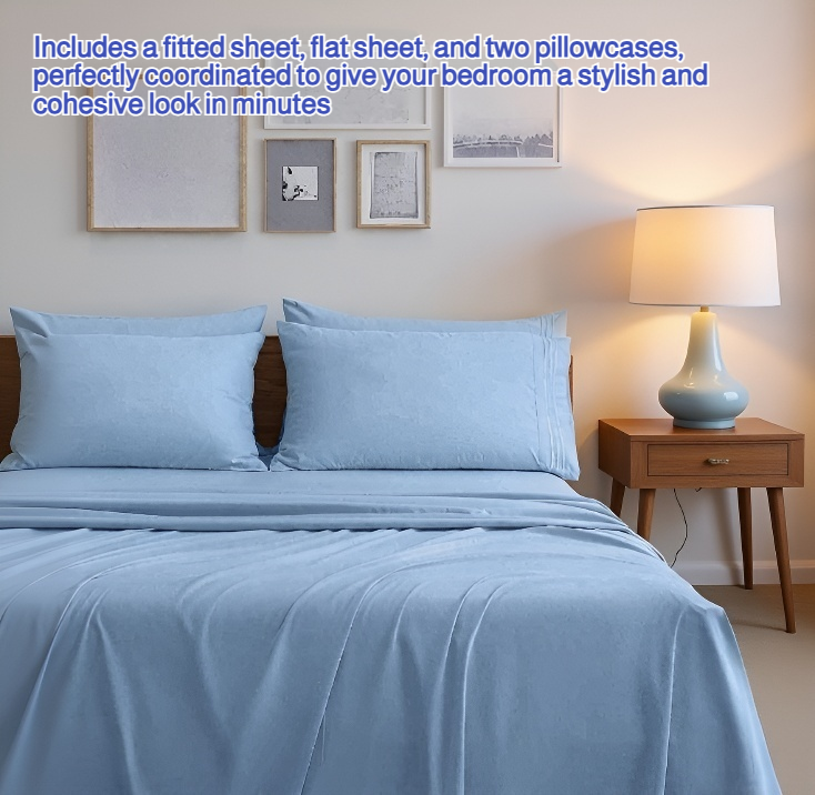 ● Experience ultimate comfort with our double-layered 4-piece bed sheet set, designed to provide extra softness and durability for a luxurious night's sleep. ● The innovative double-layered fabric offers enhanced breathability and moisture-wicking properties, keeping you cool and fresh all night long. ● Includes a fitted sheet, flat sheet, and two pillowcases, perfectly coordinated to give your bedroom a stylish and cohesive look in minutes. ● Expertly crafted for easy care—our bed sheet set is wrinkle-resistant and maintains its vibrant color even after multiple washes. ● Ideal for all seasons, the double-layered construction ensures warmth in winter and coolness in summer, making it a versatile choice for any home.